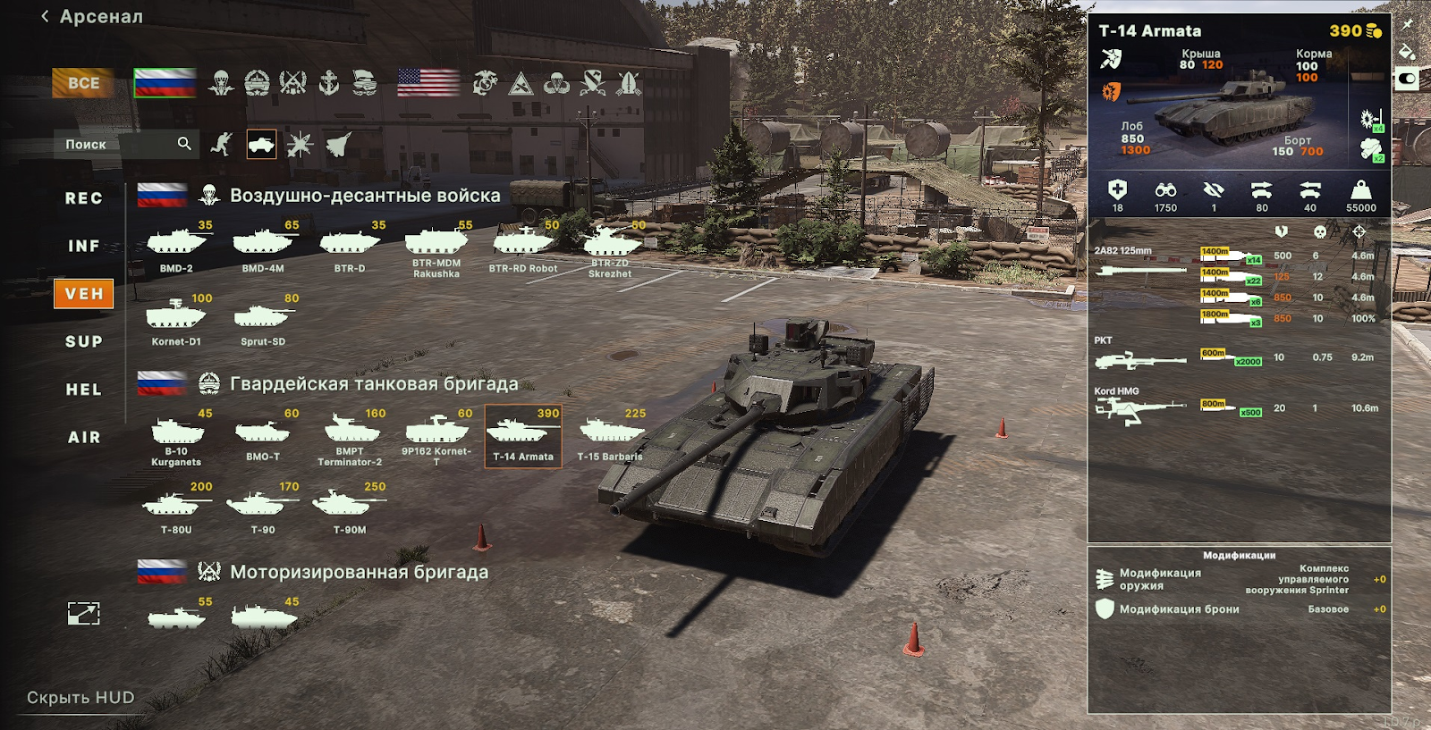 - Т-14 «Армата»: Если у тебя есть лишние ресурсы, «Армата» – это танк, который будет доминировать на поле боя. Его основное орудие уничтожает практически любую цель за один-два выстрела, а пулеметы и активные системы защиты делают его почти неуязвимым. Стоит он, конечно, дорого (почти 400 очков!), так что обязательно обеспечь ему воздушное прикрытие – противник будет пытаться уничтожить его в первую очередь.
