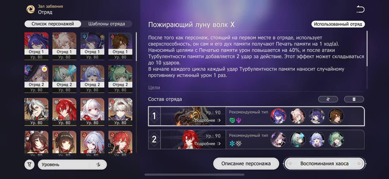 Благословление этапа: После того как персонаж, который стоит на первом месте в отряде, использует сверхспособность, он и его дух памяти получают статус Печать памяти на 1 ход. Этот статус повышает наносимый урон на 40%, а после атаки Турбулентности памяти добавляется 2 удара за действие. Эффект может складываться до 10 раз. В начале каждого цикла турбулентность наносит случайному врагу истинный урон 1 раз.