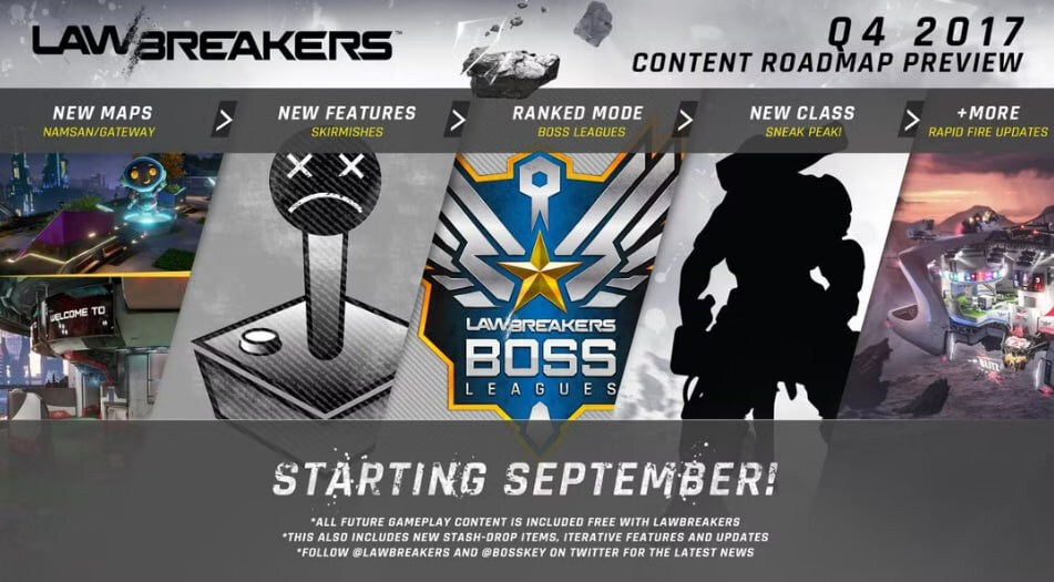 LawBreakers – сетевой шутер с персонажами, похожий на Overwatch. После релиза с 7 тысячами игроков на пике студия взялась за улучшение игры. Обещали новые карты, функции, классы, улучшение рангового режима и новый контент. Сама игра долго не прожила – она вышла в 2017-м, летом 2018-го стала бесплатной, а осенью сервера уже закрыли. Она стоила $14,99 или 999 рублей в Steam.