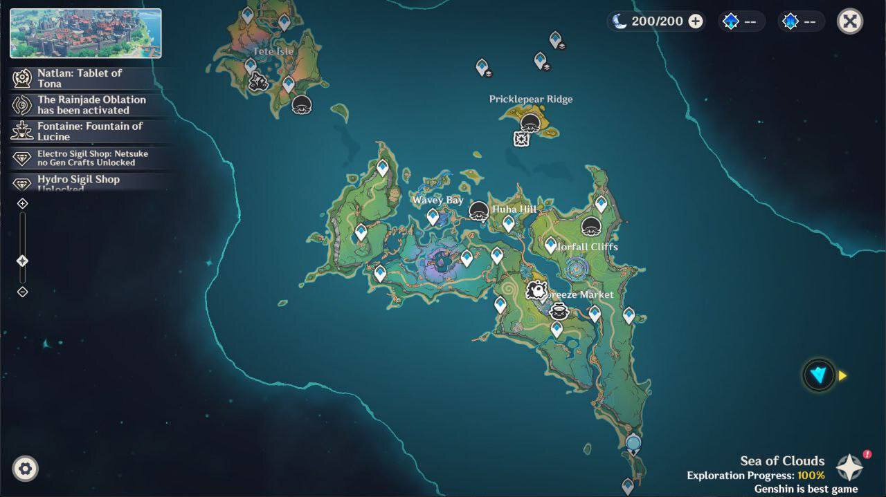 Парк аттракционов в стиле Народа Родников появится на северо-западе Натлана и останется постоянной частью карты. Включает водные горки, курортный городок, острова и подземелья. Исследование принесет 49 Пирокулов для статуи Пиро Архонта и печати для 50 уровня Круга Тоны.