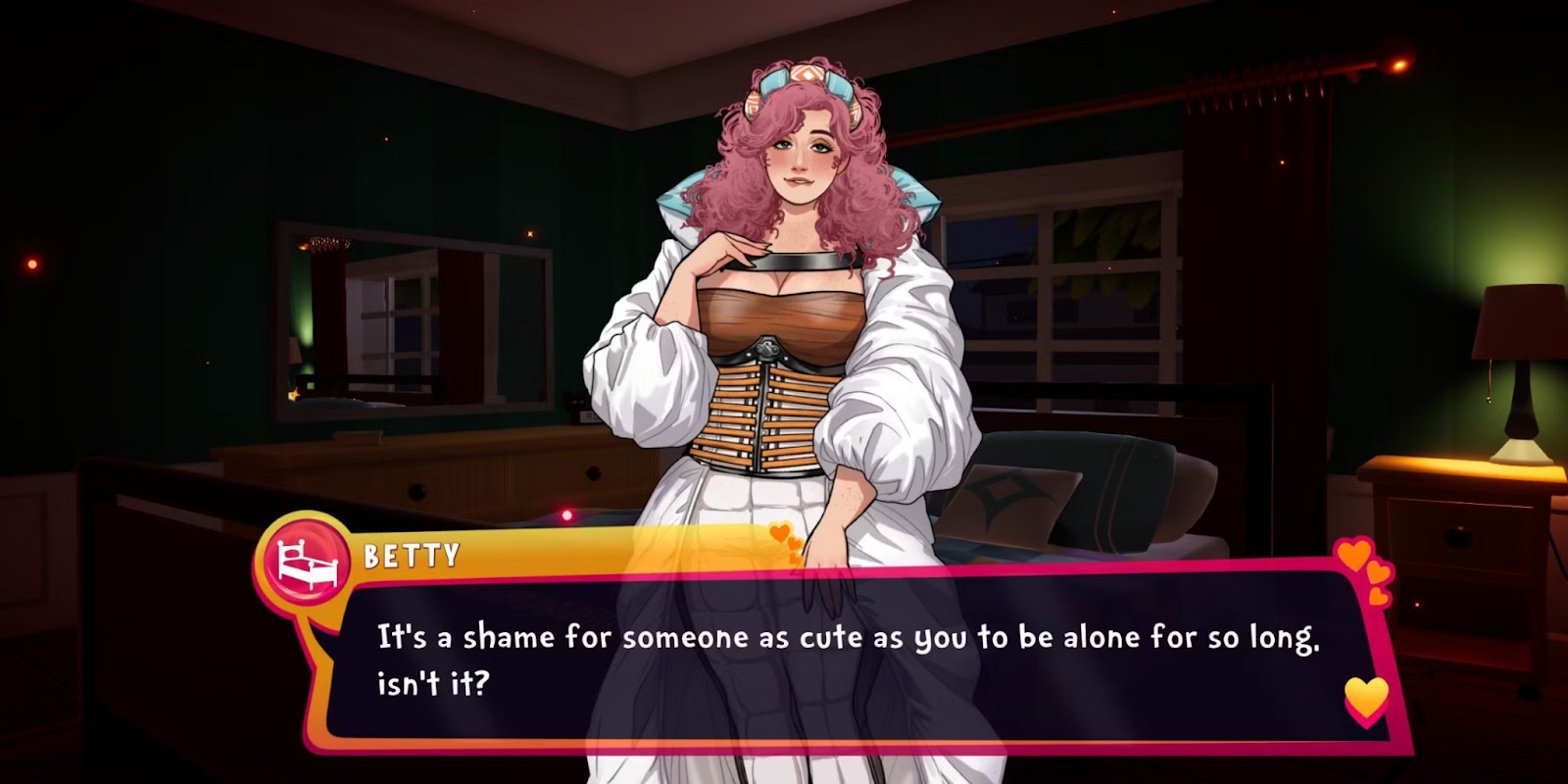 Betty – воплощение кровати, уютная и заботливая. Она всегда рядом, готовая поддержать и подарить комфорт. Ее характер теплый и понимающий, она ценит отдых и нежность. Чтобы встретить ее, достаточно подойти к кровати и начать взаимодействие. Betty – идеальный выбор для тех, кто ищет спокойные и надежные отношения. Ее озвучивает Mela Lee.