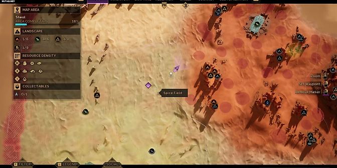 Как уже упоминалось выше, саму Меланжу вы не найдёте в открытом мире. Вместо этого придётся собирать пряный песок и перерабатывать его в специальном оборудовании. Он добывается из зон в пустыне, которые образуются после падения метеоритов.