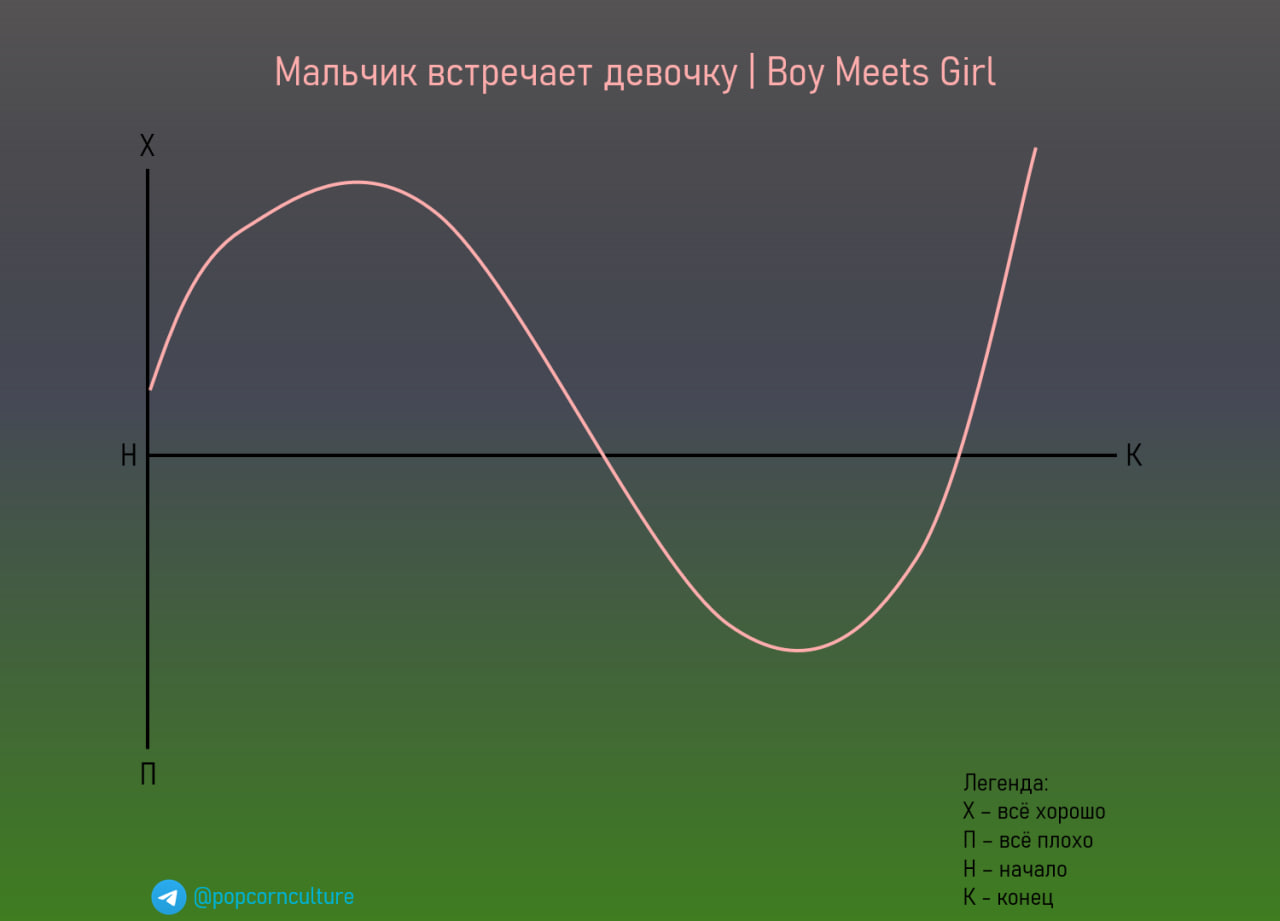 Важно: сюжет не всегда содержит романтику, любовь и/или отношения. Это может быть история о достижении любой цели с неудачами на пути.