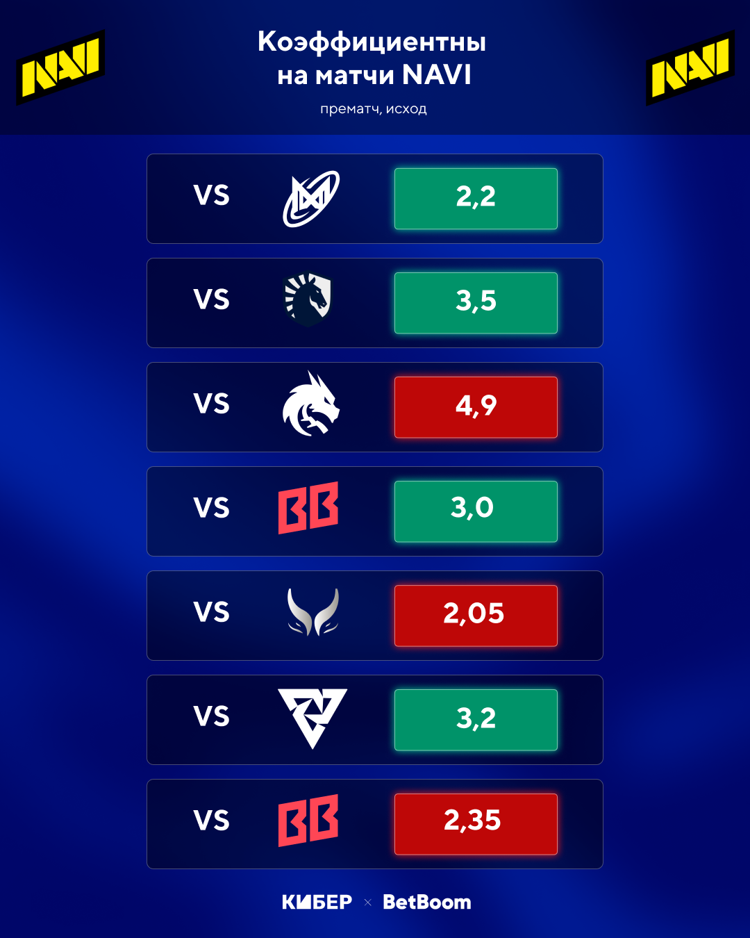 Другое громкое поражение BetBoom Team случилось в матче с NAVI на этапе швейцарки. NAVI реабилитировались за обидное поражение против Spirit и разнесли соперника со счетом 33:12 за 33 минуты на третьей карте.