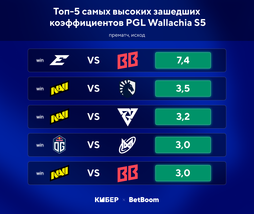 BetBoom Team выиграла PGL Wallachia S5 и прервала серию побед Liquid на этом турнире. Хотя начало чемпионата выдалось тяжелым для команды, ее победа не стала большой неожиданностью, потому что букмекеры прогнозировали BetBoom Team место в топ-4.