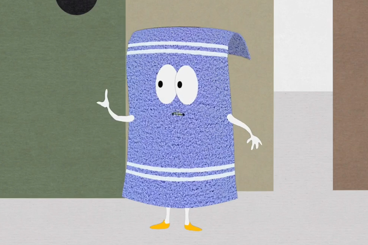 Полотенчик — говорящий, самосознающийся полотенчик, созданный генетиками как RG‑400, чтобы избавлять людей от влаги. Он постоянно появляется из ниоткуда, чтобы давать советы вроде «не забудьте прихватить полотенце», но тут же забывает о чем шла речь — слишком занят тем, чтобы «раскачаться». Его появление — пародия на бессмысленный мерч и второстепенных персонажей: создатели признавались, что придумали его «как самое бесполезное существо, чтобы потом выпустить столько сувениров, сколько хватит» . Со временем он стал постоянным партнером Рэнди на «Ферме Тэгриди», раздобывшим работу в аграрном бизнесе. Забавный, забывчивый и не слишком умный — Полотенчик остается лучшим примером беззаботного абсурда шоу.