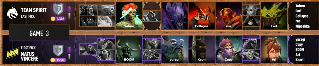 Что пошло не так на Валахии? Парни откровенно экспериментировали с пиками. На третьей карте против NAVI, чтобы не приходить Эмбером в МК, Ларлу на ластпик добирают Веномансера(?). Эмбера двигают на четверку, а Яторо отдают Муэрту.