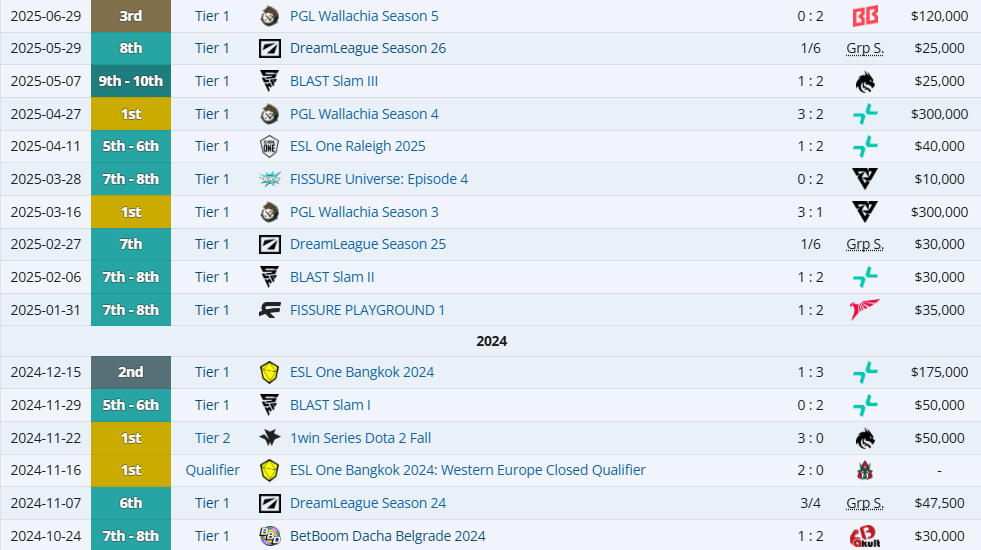 Так ли все плохо? Вовсе нет, для команды Мипошки это абсолютная норма. В 2024 году, когда Falcons выигрывали все и вся, Spirit забрала Валахию и была одной из трех команд помимо Малрина и компании, кто выиграл хоть что-то на тир-1 уровне. Остальными двумя были Xtreme Gaming и Azure Ray. Правда, потом на Рияде и Инте у Spirit не пошло.