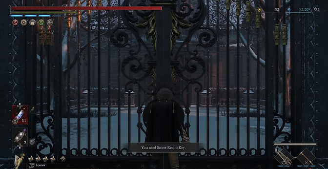 После окончания титров и возвращения в игру обязательно отправляйтесь на временную шкалу «Прошлое». Вам нужно подняться в отель «Ивентэйд Крат» и найти фруктовое дерево, украшенное золотыми монетами. Слева за этим деревом расположены ворота, которые ранее были закрыты, но теперь их можно открыть с помощью ключа от секретной комнаты. Обратите внимание на синий след из бабочек, который приведет вас прямиком туда.