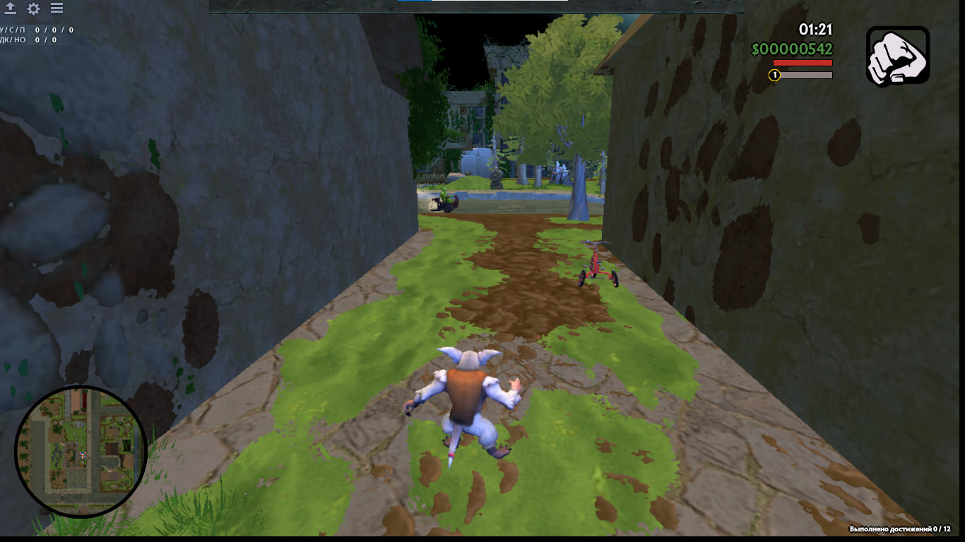 Первое же открытие – вид от третьего лица с привычным управлением из GTA: передвижение на WASD, бег на Shift, прыжок на пробел. Сесть в транспорт – F. Да-да, транспорт здесь пусть и немного криво, но работает. Даже велосипед!
