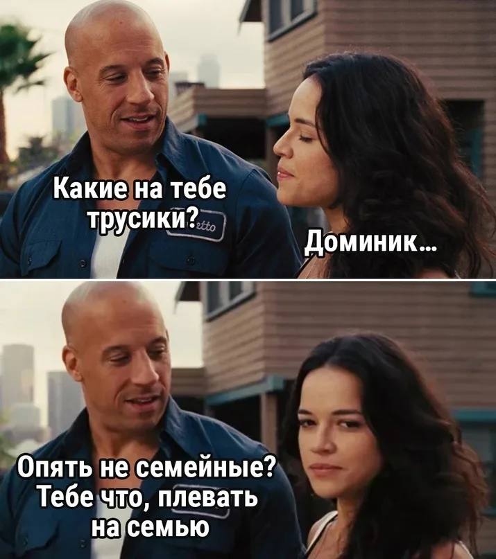 Нет ничего важнее семьи. И нет ничего более вечного, чем мемы про «Форсаж». Поэтому мы запустили опрос в соцсетях – попросили вас поделиться любимыми картинками и видео про франшизу.