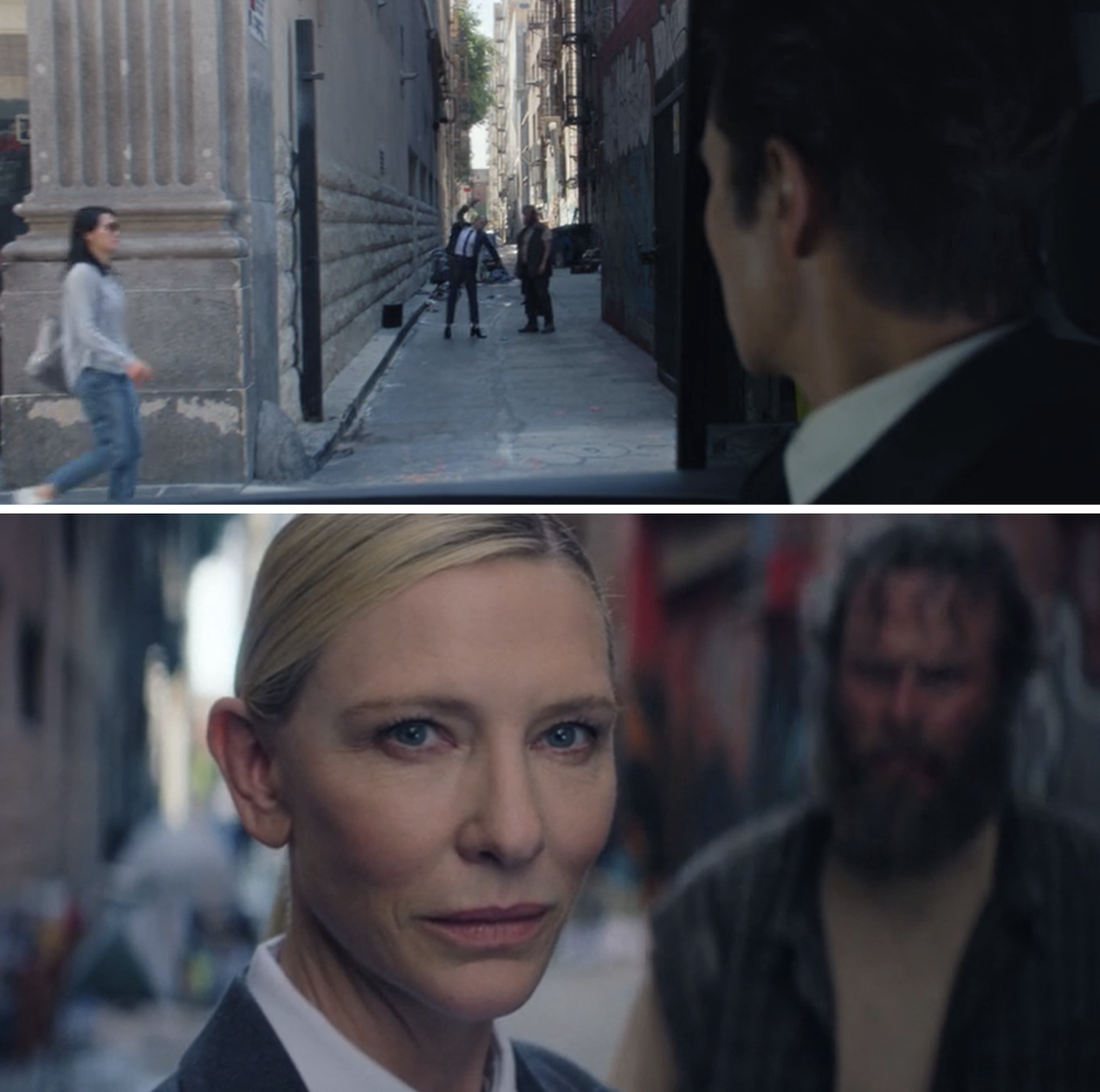 Финальный эпизод «Игры в кальмара» завершился неожиданным камео Кейт Бланшетт. В одном из переулков актриса в роли вербовщика обыгрывает бездомного в ттакчи. Подъезжает машина Фронтмена – герои смотрят друг на друга.