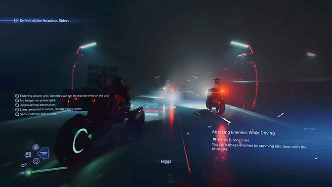 Добравшись до отмеченной области, вы заметите Автодорожник (Auto-Paver), подсвеченный красным. При приближении начнется кат-сцена: вы окажетесь на плавающем участке дороги, где начнется бой. Призрачные мотоциклыбудут поочерёдно нападать на вас. Управляя три-крузером, уворачивайтесь и отстреливайте их в движении. Используйте автоматическое огнестрельное оружие.