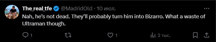 «Нет, он не умер. Они наверняка превратят его в Бизарро. Хотя потенциал Ультрамена растратили зря».