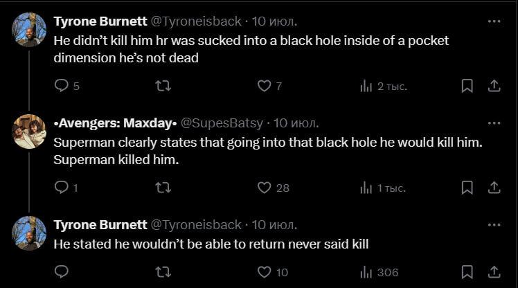 «Супермен четко дает понять, что если он попадет в черную дыру, это его убьет. Супермен убил его».