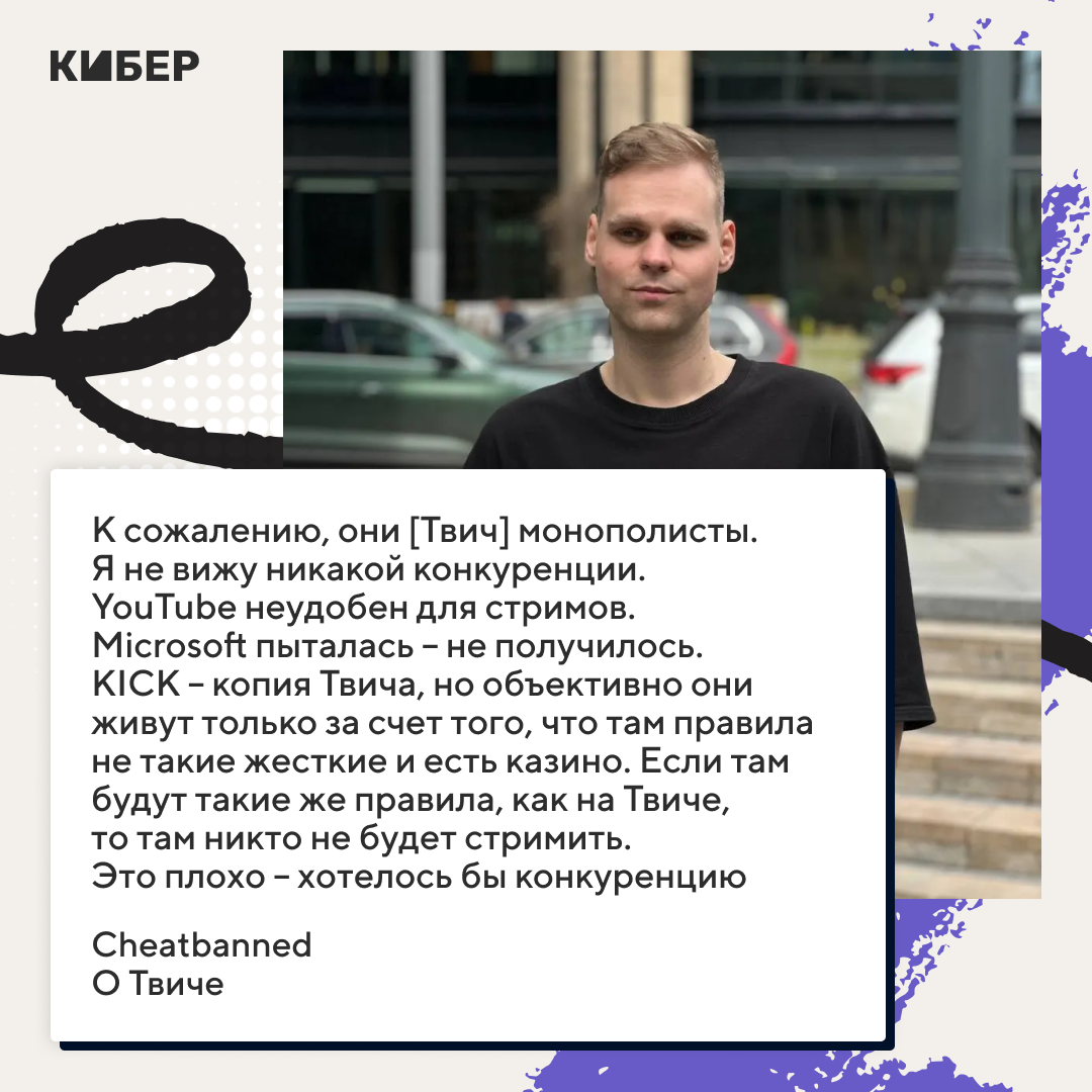 – К сожалению, они монополисты. Я не вижу никакой конкуренции. YouTube неудобен для стримов. Microsoft пыталась – не получилось. KICK – копия Твича, но объективно они живут только за счет того, что там правила не такие жесткие и есть казино. Если там будут такие же правила, как на Твиче, то там никто не будет стримить. Это плохо – хотелось бы конкуренцию.