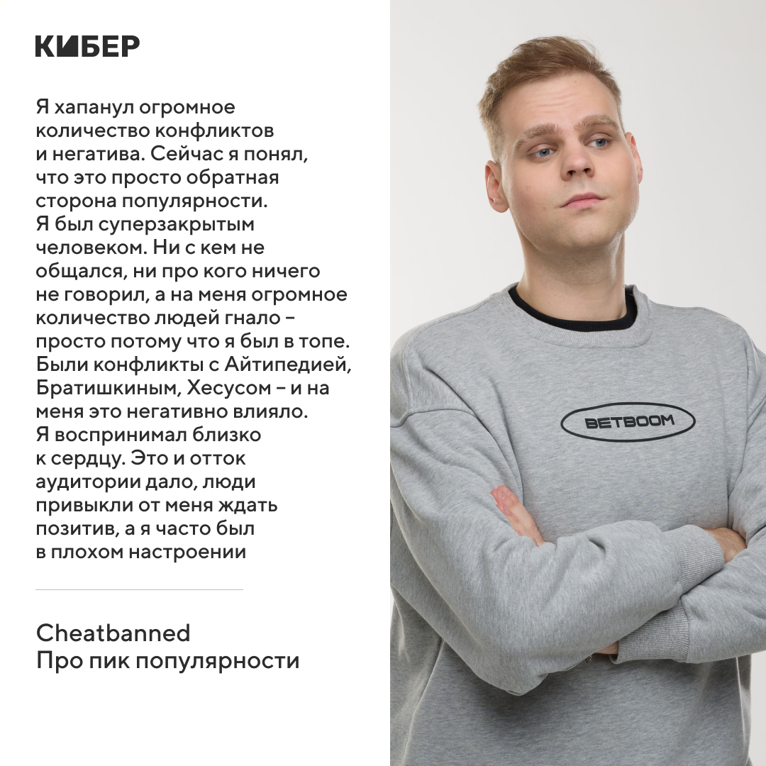 Но в этот пик я хапанул огромное количество конфликтов и негатива. Сейчас я понимаю, что это просто обратная сторона популярности. Я был суперзакрытым человеком. Ни с кем не общался, ни про кого ничего не говорил, а на меня огромное количество людей гнало – просто потому что я был в топе.