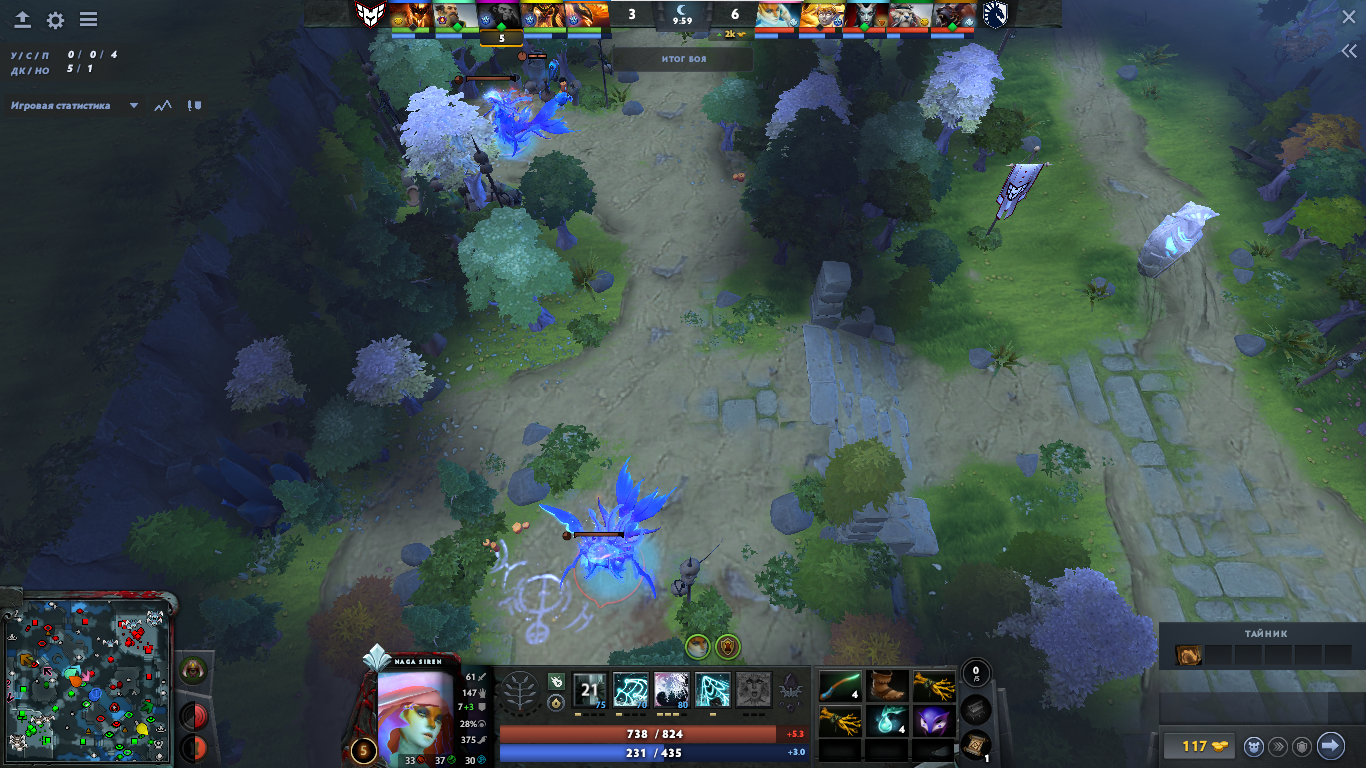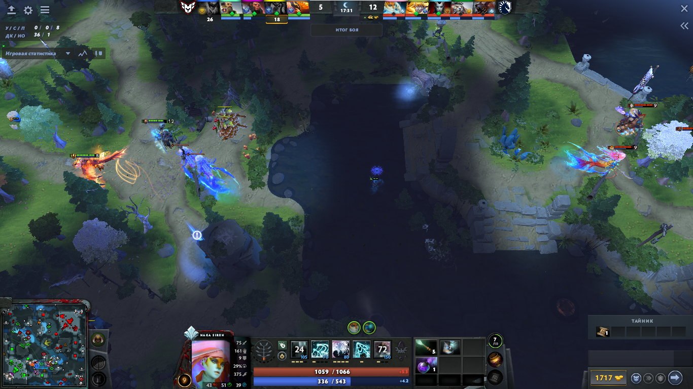 Иллюзии Naga Siren живут 26 секунд. Этого достаточно для того, чтобы разведать соседний лес или проверить опасный для захода маршрут. Посмотрите, сколько полезных действий на Сирене показывает Insania за неполные 10 минут.
