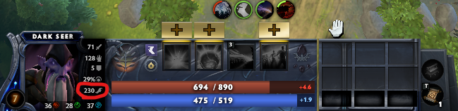 Эффект от аспекта Deluge крайне нетипичный. Он не замедляет в процентах, но ограничивает максимальную скорость передвижения 230 единицами. И это полностью перекрывает некоторые способности других героев. Например – Stampede Кентавра или же (что крайне неприятно на линии) Surge от Dark Seer. Способности просто не работают под эффектом волны.