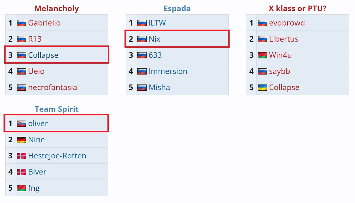 И Team Spirit реально отыграла 7-ю онлайн-квалификацию на Открытый Кубок ФКС России в таком составе! Обыграв в ней Espada Никса (да, Скитер обыграл Никса в очном Bo3-матче на профессиональной сцене!) и стак Коллапса в финале.