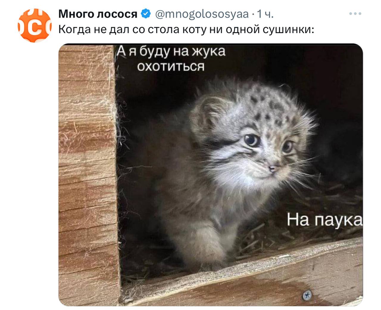 Новый мем – с малышом манулом, который будет охотиться на жука и паука.