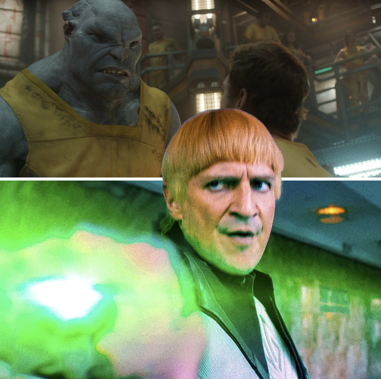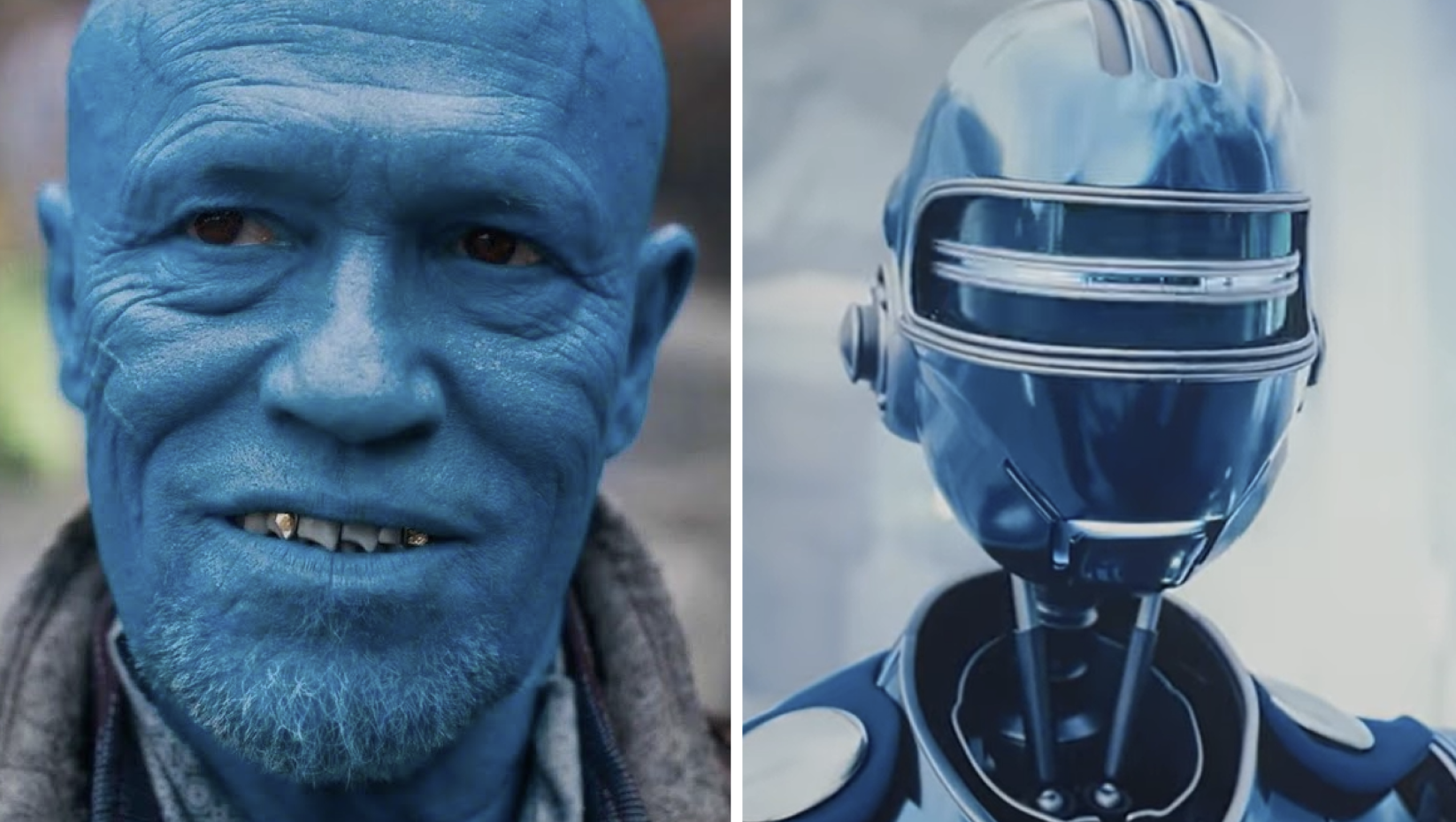 Перед вами опустошитель Нарблик, который погиб в «Стражах Галактики 2» из-за восстания против Йонду. Также он сыграл Ксломо Смета, жителя города Ноухер, в финальной части трилогии. Затем Теренс получил крохотную роль командира экипажа в «Отряде самоубийц» Ганна.