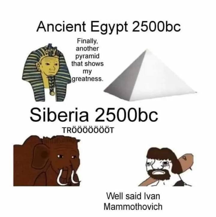 Оригинальный мем про мамонта хорош, но его новые абсурдные ремейки лучше. Попытки скрестить новые мемы со старыми порой становятся второй жизнью для мема – прямо как в этом случае.