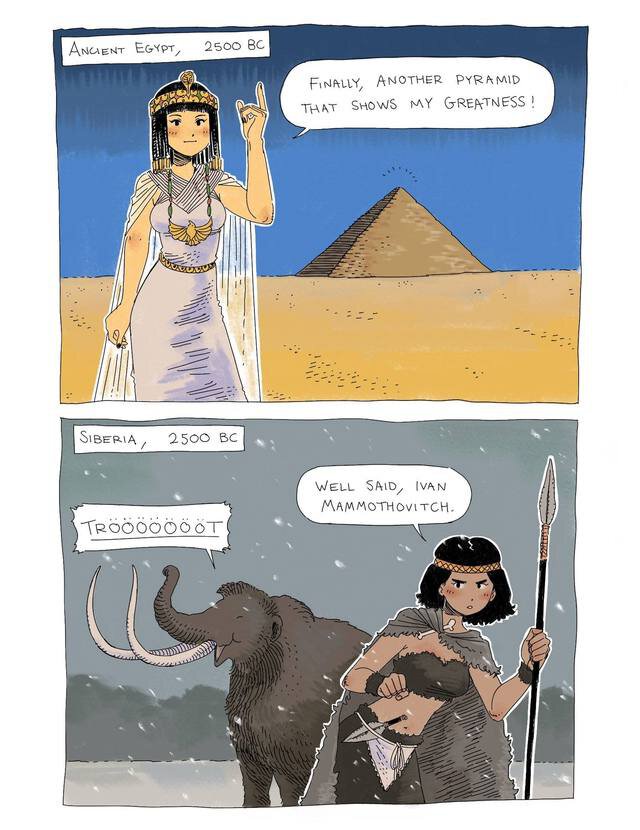 «Древний Египет, 2500 лет до нашей эры: наконец-то, еще одна пирамида, показывающая мое величие.