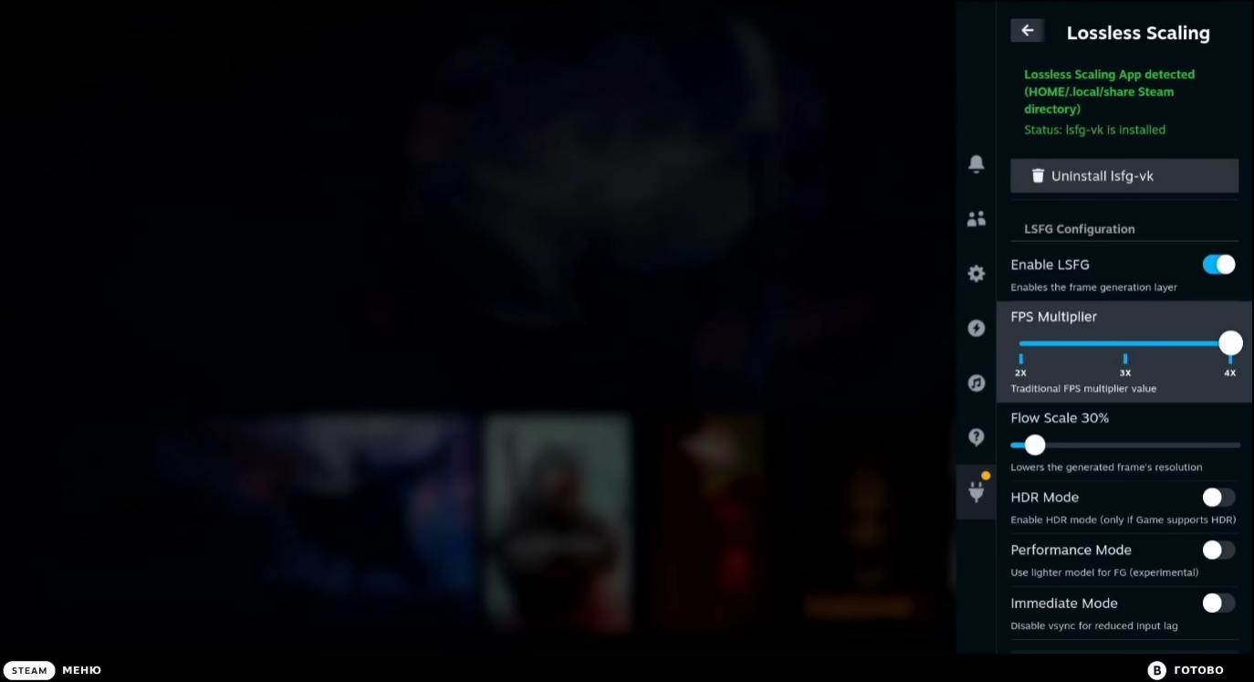 Lossless Scaling – специальный плагин для Steam Deck, который помогает экономить заряд батареи и поднимать FPS. Он интегрирован с программой Lossless Scaling (LS), которая умеет добавлять генератор кадров в любые игры на Windows. Разработчики плагина адаптировали функционал под SteamOS.