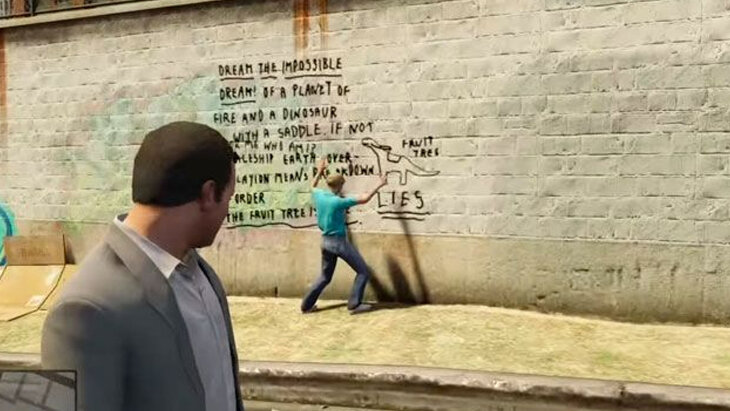 После перестрелки остается только сесть в Tailgater, забитый 2,1 миллионом, и уйти от полиции – чаще всего с двумя-тремя звездами. Деньги зачисляются автоматически, а спустя время приходит звонок от самого Формажа. Он угрожает, но это пустые слова – он ничего не сделает. Какой бы путь ни выбрал Майкл, в мире остается десять частей Трактата, разбросанных по карте. Собрав их, игрок получает не откровение, а сатирический текст, высмеивающий саму идею слепой веры.