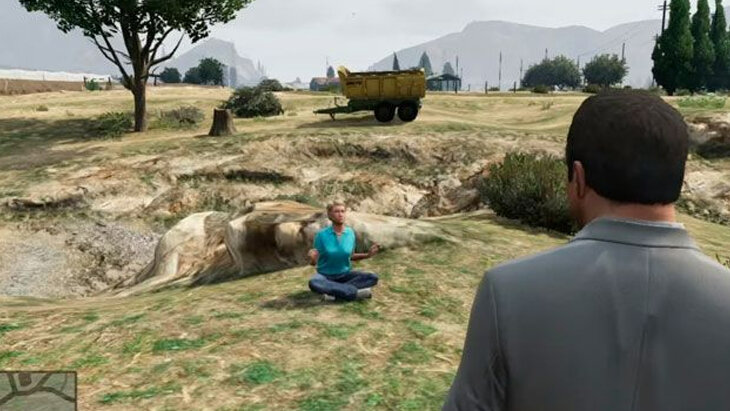 Завершив поездку, перед Майклом раскрывается выбор. Первый путь – следовать инструкциям: выйти из машины, пройти с членом культа по имени Джесси и получить награду – ржавый трактор с номером KIFFLOM1. Это символ, почти насмешка. Такой же трактор можно найти рядом с домом, куда он подвозит Урсулу, или просто в округе Блэйн. Второй путь – разрушить иллюзию. Активировать способность, взять оружие и убить всех: охрану, пилота, подмогу, которая подъедет позже. Лучше начать с вертолетчика – если он взлетит, часть награды уйдет. Гранатомет или RPG помогут быстро расправиться с подкреплением, пока те еще в машинах.