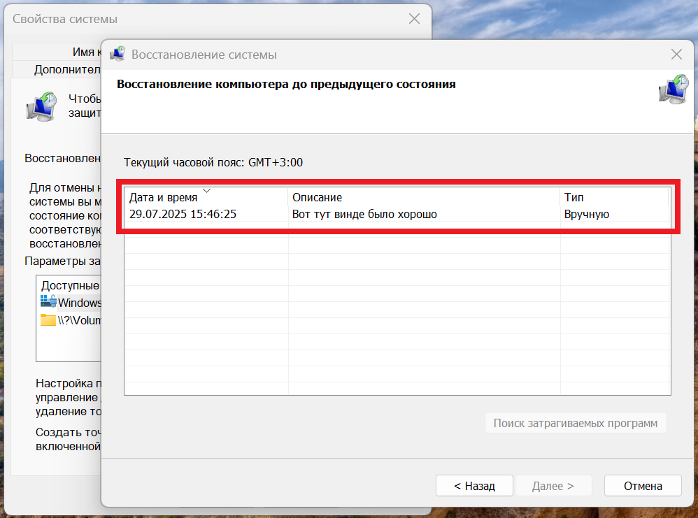 Как откатить Windows через точку восстановления