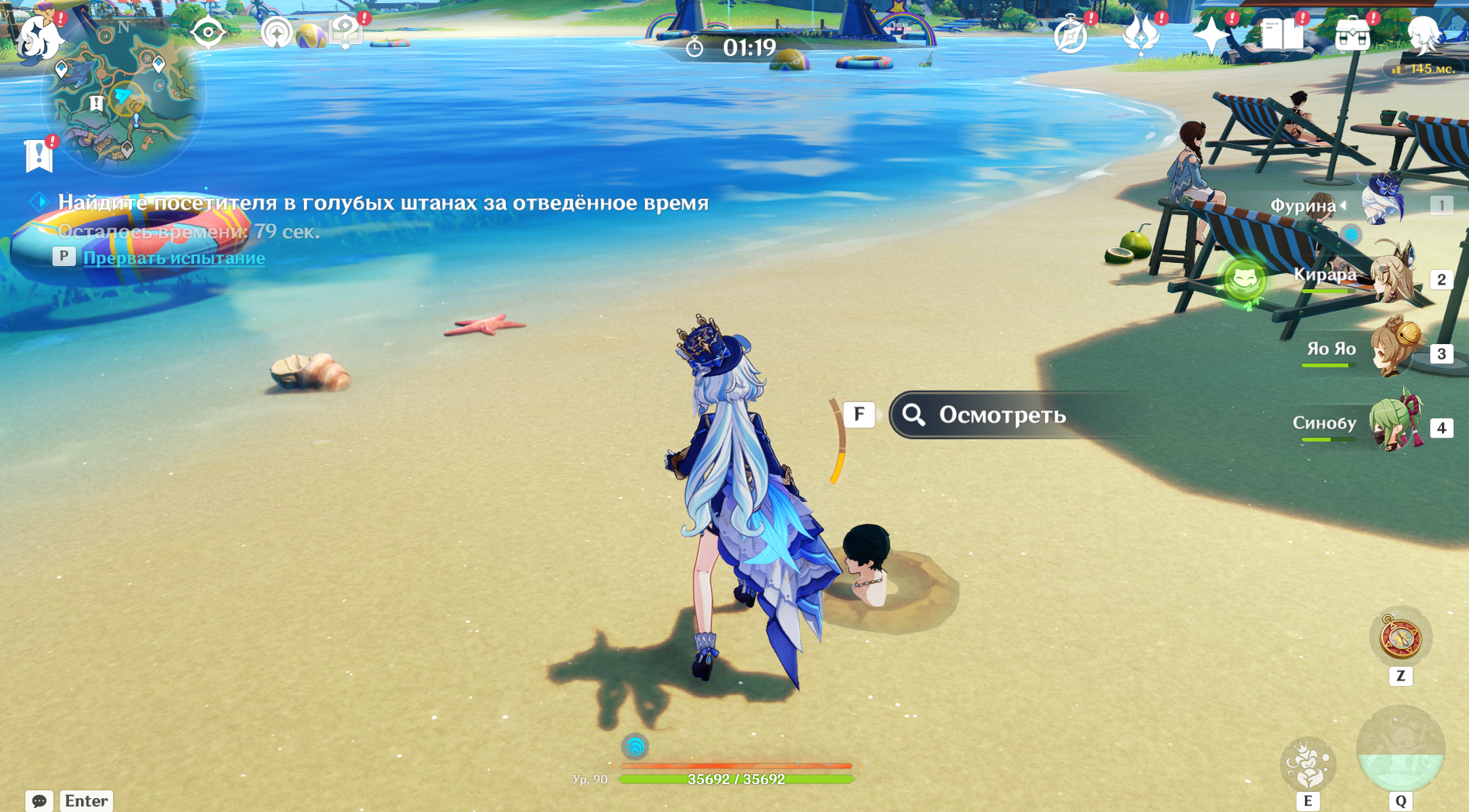 Спросите, нужна ли ей помощь. Она поручит задание на время: доставить заказ гостю в синих штанах. Нужного непися вы найдете неподалеку на пляже, зарытого в песок по пояс.