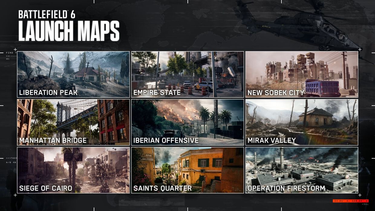 На старте в Battlefield 6 появятся девять карт. Одна будет старой: речь о ремейке «Огненного шторма» из Battlefield 3. Все остальные карты новые, они закинут бойцов в Каир, Нью-Йорк, Таджикистан и другие сюжетно важные места. После релиза в рамках сезонной поддержки появятся и другие локации.