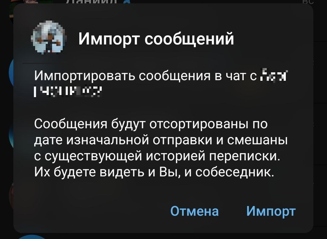 Также очевидно, что вы можете перенести любой диалог из WhatsApp только в диалог с уже существующим контактом. То есть, у вас и у вашего собеседника должны быть аккаунты в телеграме, и вы должны быть контактами друг у друга. Если это групповой чат, его историю можно перенести только в групповой чат – либо в уже существующий, либо в специально созданный новый.