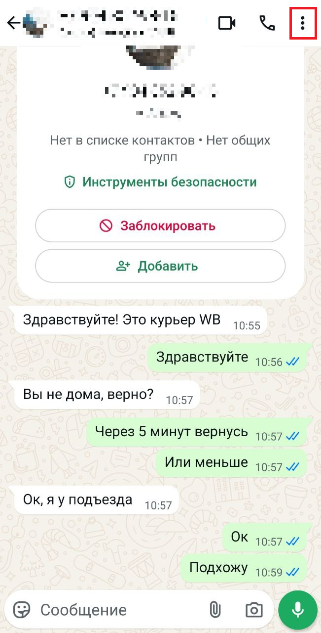 Войдите в нужный чат в WhatsApp, откройте меню его настроек через три точки рядом с названием.