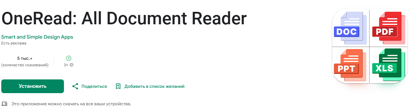 - One Read : поддерживает конвертацию PDF в Word (DOC/DOCX) и другие форматы. Бесплатно с рекламой, подписка отключает ее показ.