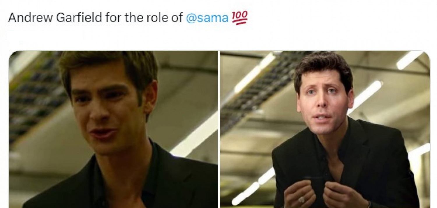 В те дни юзеры соцсетей активно постили шутки о происходящем в OpenAI, а также предлагали актеров на главные роли в потенциальной экранизации. Участие в съемках Юры Борисова, конечно, никто не мог наванговать. Однако были те, кто попал в точку, мечтая увидеть Эндрю Гарфилда в роли Сэма Альтмана.