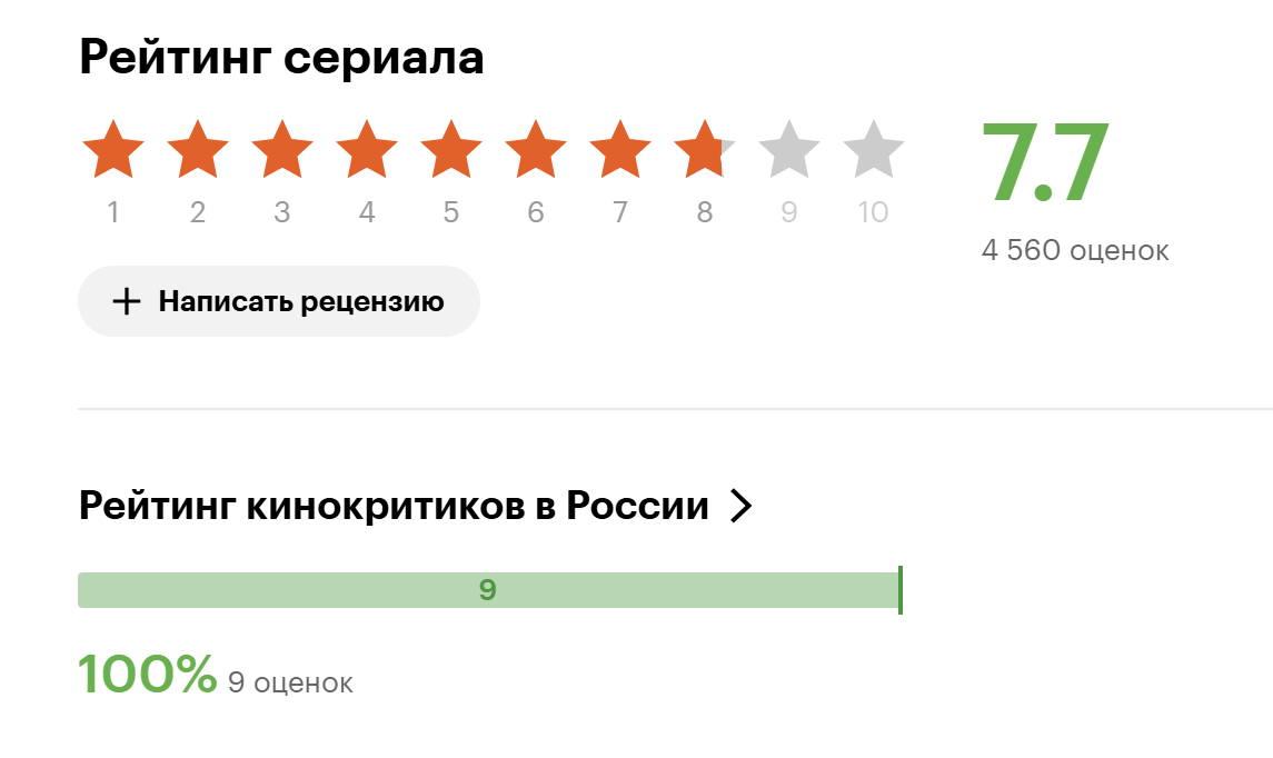 Российские зрители и отечественная пресса тепло приняли новый сериал. На «Кинопоиске» проект получил увесистый зрительский рейтинг 7.7 на основании 4 560 оценок и 100% одобрение девяти критиков России.