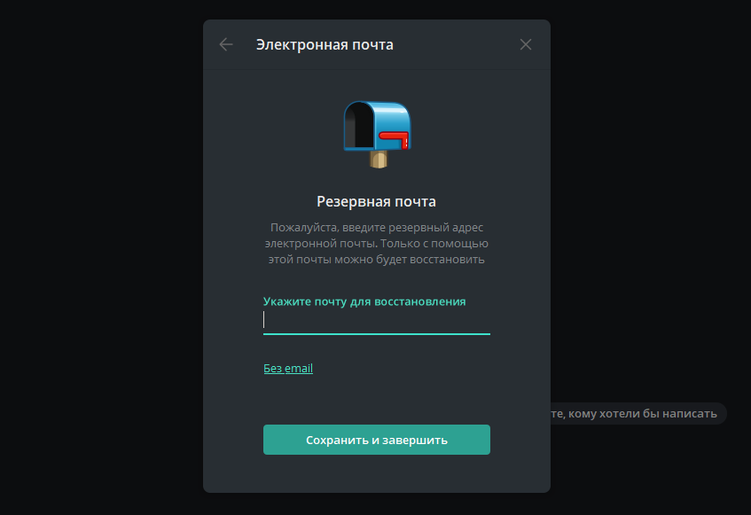 Добавьте почту, по которой можно будет восстановить доступ к паролю. Или нажмите «Пропустить», если уверены в своей памяти.