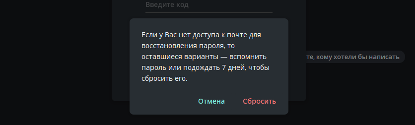 Если у вас нет доступа к почте, нажмите «Нет доступа к почте?», а в открывшемся окне – «Сбросить». В этом случае придется подождать неделю, и система сама сбросит пароль.