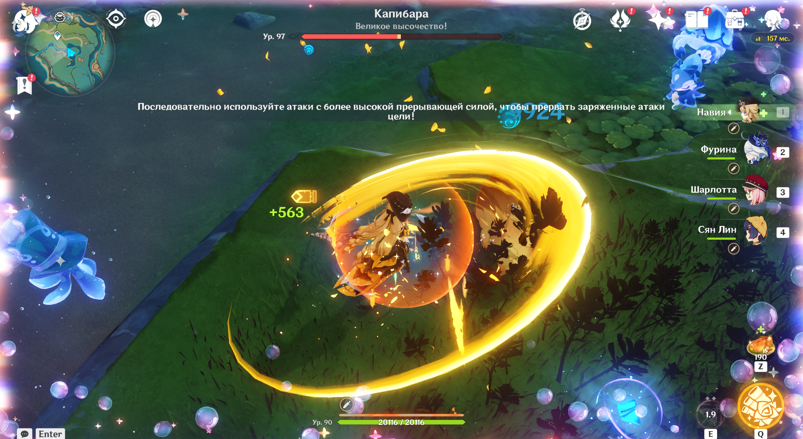 Чтобы прервать стойку, используйте атаки с высоким прерыванием или реакцию Перегрузка (Пиро + Электро). Подойдут двуручники с обычными и заряженными атаками, атаки в падении и ульты с дальним радиусом.