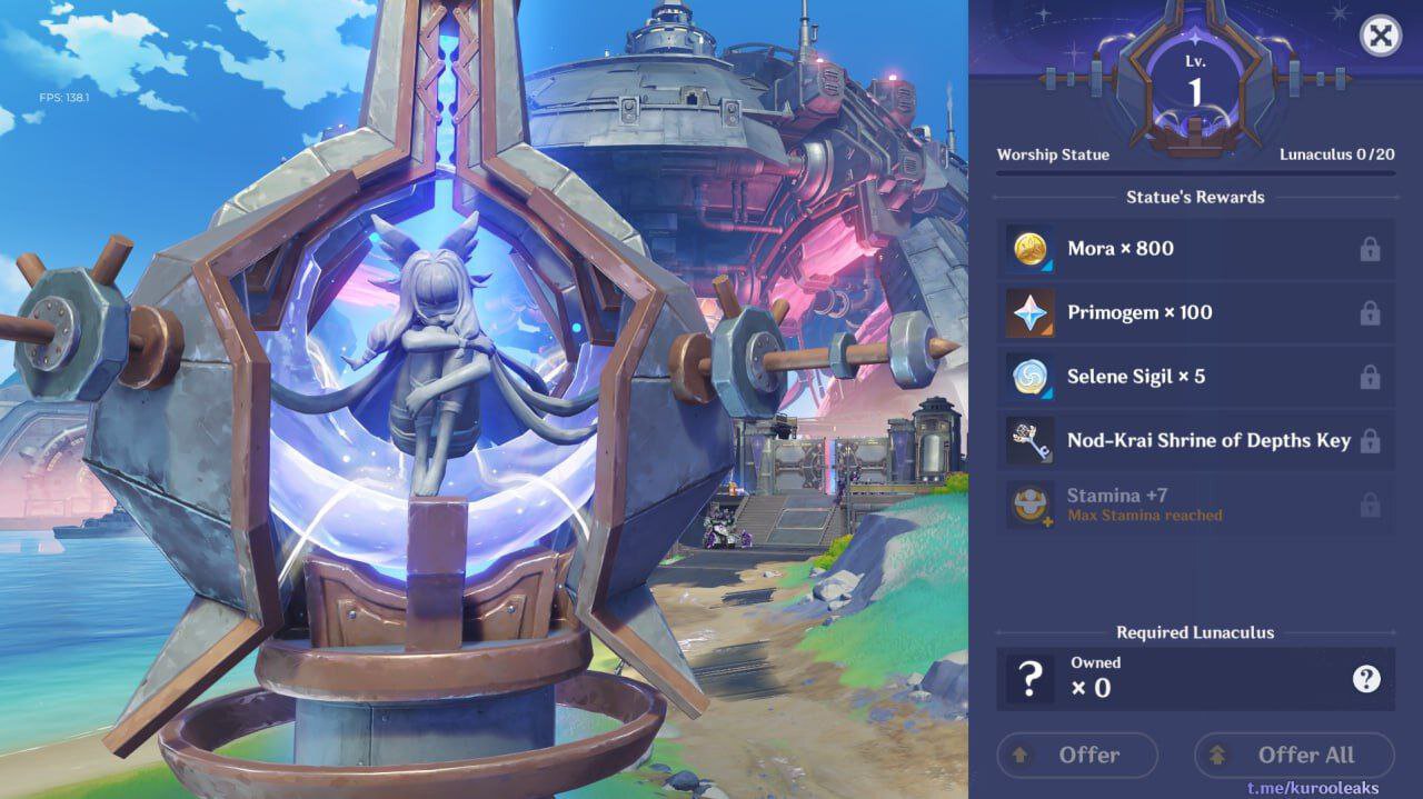 Вместо криокулов в регионе собирают Лунокулы, которые приносят в дар статуе Морозной Луны. По мере прокачки статуя меняет облик.