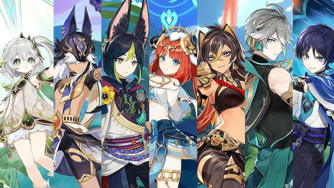 ● 5★ персонажи: Странник (Анемо, катализатор), Аль-Хайтам (Дендро, одноручный меч), Сайно (Электро, копье), Нилу (Гидро, одноручный меч), Дэхья (Пиро, двуручный меч), Тигнари (Дендро, лук).