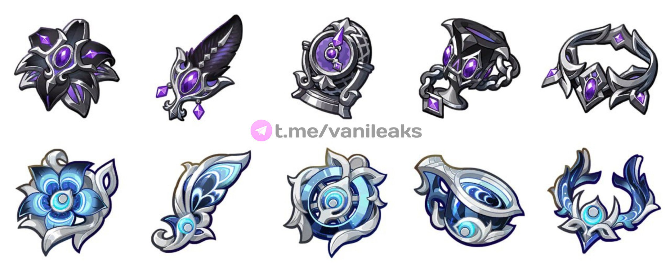 ● 5★ Катализатор «Зеркало прядильщика ночи» (сигнатура Лаумы) – повышает мастерство стихий при активации Лунной Бутонизации, усиливает реакции Гидро/Дендро и активирует бафф Лунного цикла для всей команды.