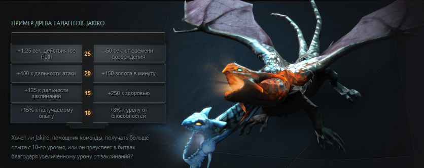 В одном из патчноутов Valve спрашивала: выберете вы на Jakiro дополнительный опыт или магический урон. Но единственное место, где в этом древе талантов был выбор – это 15-й уровень. Бонус к опыту ускорял получение сильных талантов, +150 золота в минуту гарантировали предметы даже на пятерке, дефающей мегакрипов. А -50 секунд от времени возрождения позволяли вообще не бояться смерти где-либо, кроме собственной базы. Зачем тратить байбэк, если ты все равно возродишься раньше, чем соперник дойдет до твоего хайграунда?