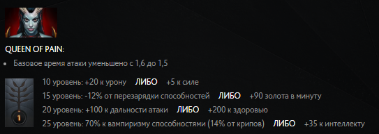 Для примера: здесь древо талантов Queen of Pain в патче 7.00: