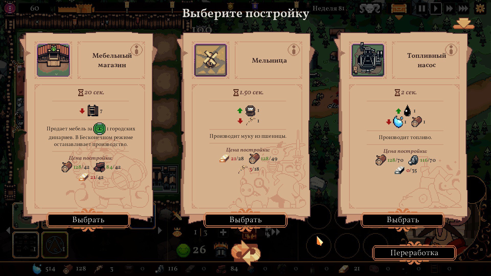 Другая беда – рандом. Чертежи построек выпадают случайным образом. Бывает так, что в королевстве стоит казарма мечников, но железная шахта, без которой не призвать бойцов, настойчиво не идет в руку. Обидно!