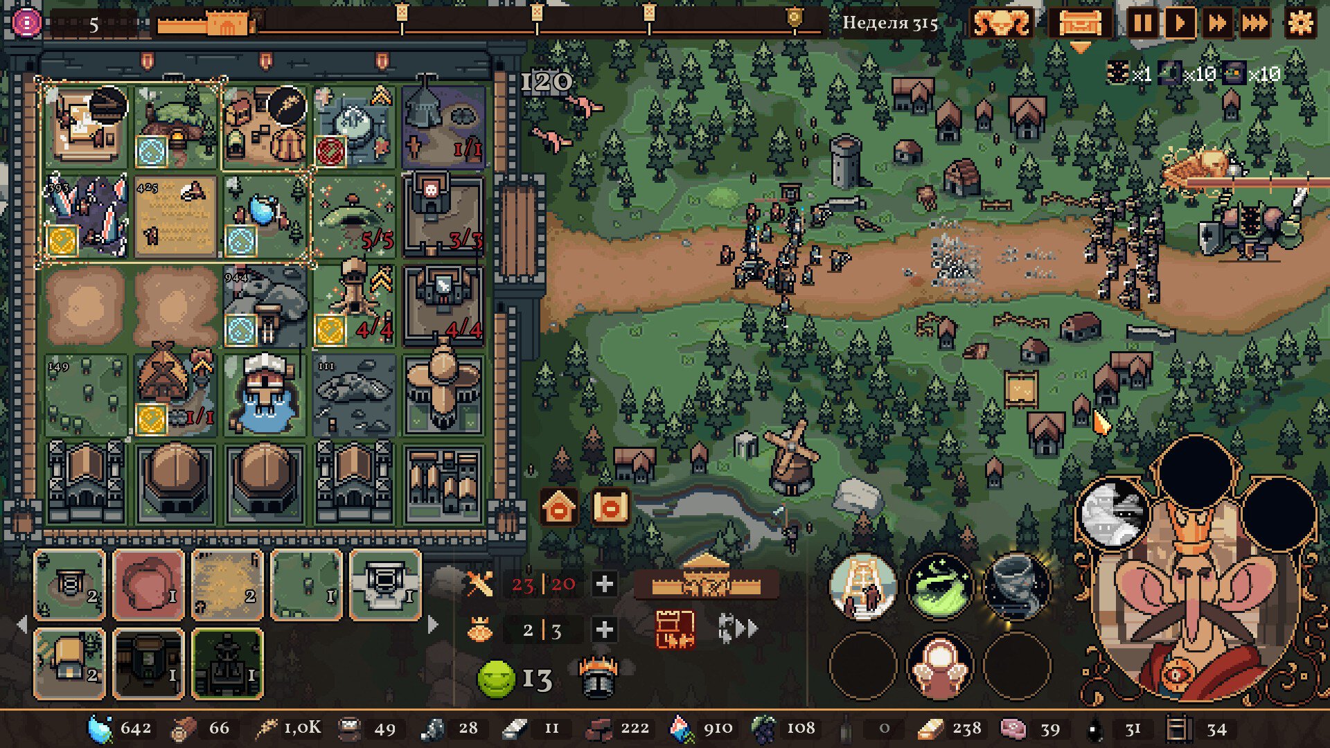 Секрет вот в чем: The King is Watching построена на знакомых и элементарных основах, однако вместе они складываются в нечто совершенно новое. Это вроде простой рогалик, где вы бесконечно повторяете забеги и вкладываетесь в мета-прокачку, но солдаты дерутся сами по себе. Это обычная стратегия, где важно выстроить крепкую экономику, но здания не работают без присмотра. Еще это практически Loop Hero, которая проходит себя сама, а вы лишь выстраиваете на пути модификаторы. Вот только новинка требует в разы больше осознанности и вовлечения.