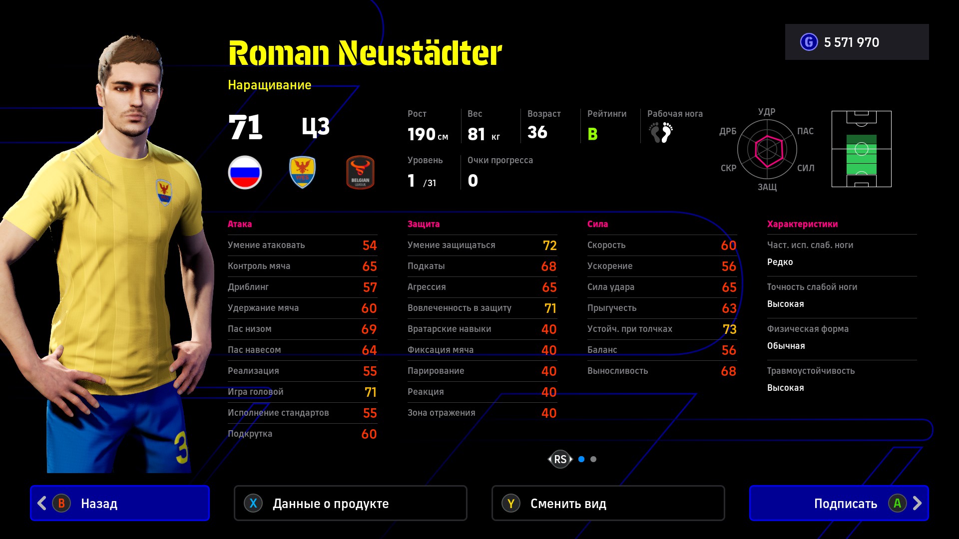 Арсен Захарян блистал в «Динамо» и уехал на повышение в Ла Лигу. Первый сезон был неплохим, хотя болельщики ждали больше остроты – всего один гол в 40 матчах. Увы, второй год хавбека в Испании омрачили бесконечные травмы. Konami оставила Захаряну прежний рейтинг и едва заметно подрезала контроль мяча и пасы.